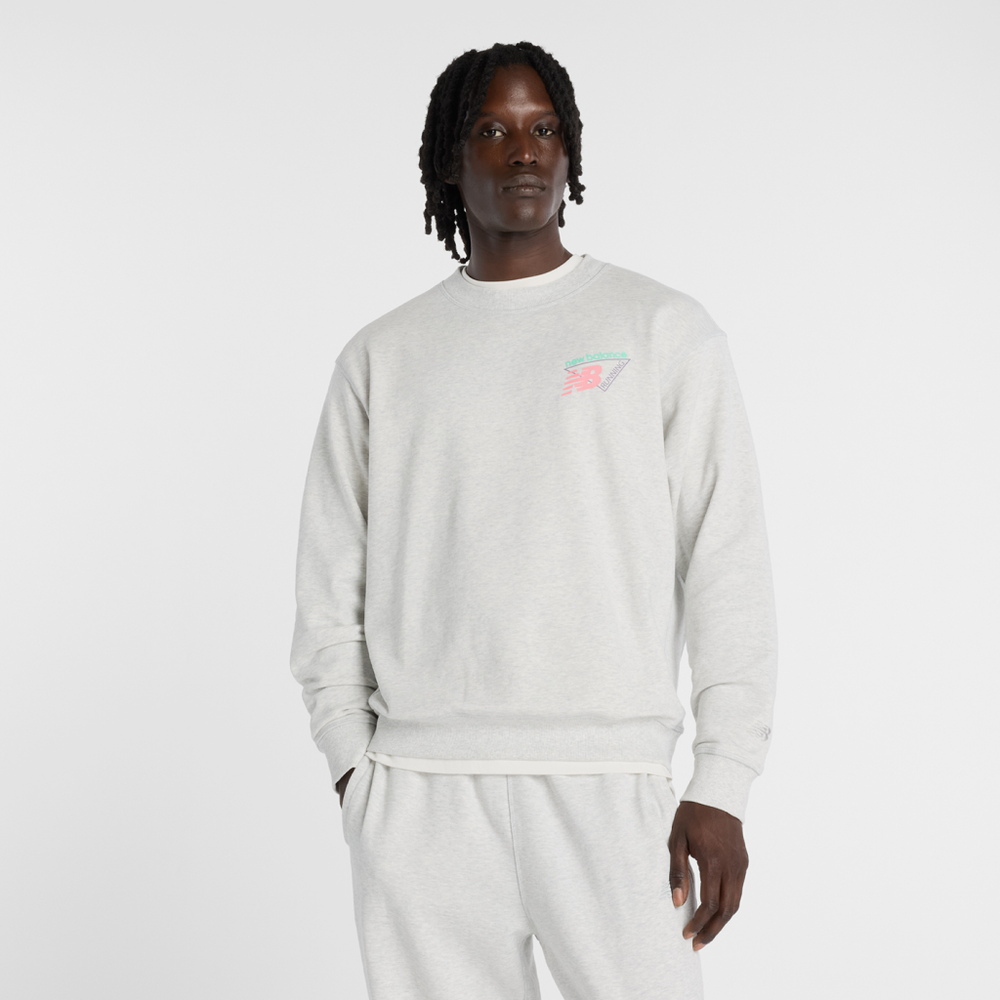 Diese komfortable French-Terry-Crew verfügt über eine sportlich inspirierte New Balance-Grafik für den ganzen Tag.